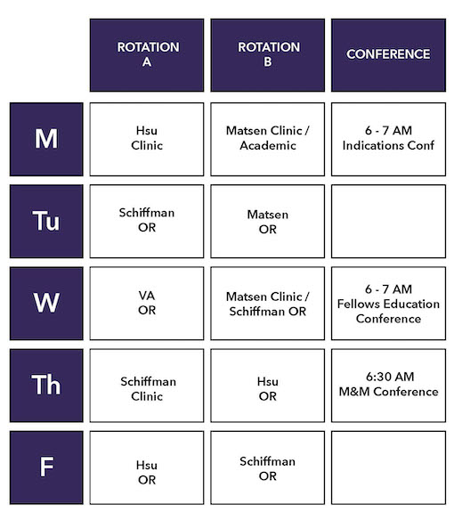 Our weekly experience includes clinic, pre-op conference, the operating room, post-op conference, and research.